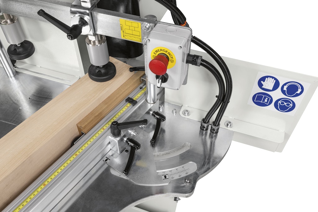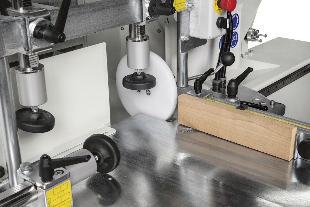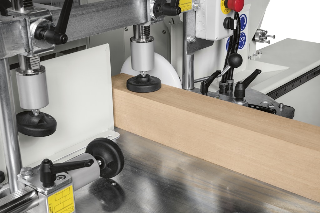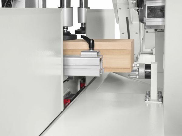 Il gruppo a tenonare dispone di due pressori verticali ed uno orizzontale per il bloccaggio e la lavorazione di pezzi anche di grandi dimensioni.